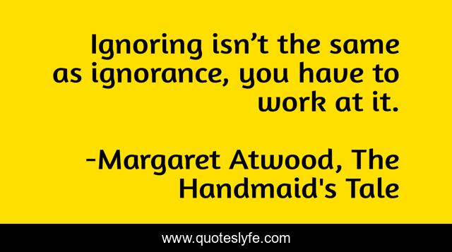 "Margaret Atwood, The Handmaid's Tale Quotes." Quoteslyfe.com, 2025. Fri. 05 Dec. 2025. <https://www.quoteslyfe.com/quote/Ignoring-isn-t-the-same-as-ignorance-33303>.