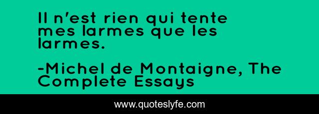 This page presents the quote "Il n'est rien qui tente mes larmes que les larmes.". Author of this quote is Michel de Montaigne, The Complete Essays. This quote is about essay, renaissance, skepticism, philosophy, french,.