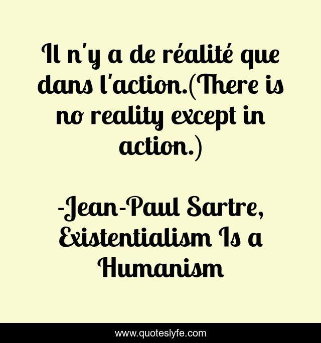 "Jean-Paul Sartre, Existentialism Is a Humanism Quotes." Quoteslyfe.com, 2025. Fri. 05 Dec. 2025. <https://www.quoteslyfe.com/quote/Il-n-y-a-de-r-alit-7487>.