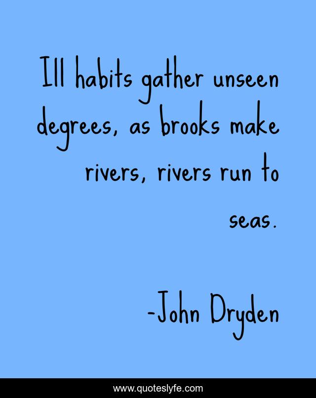 This page presents the quote "Ill habits gather unseen degrees, as brooks make rivers, rivers run to seas.". Author of this quote is John Dryden. This quote is about habits, run, rivers,.