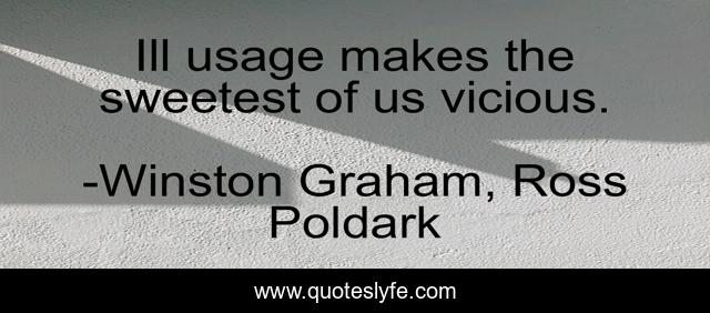 This page presents the quote "Ill usage makes the sweetest of us vicious.". Author of this quote is Winston Graham, Ross Poldark. This quote is about life, pain, struggles, hurt,.