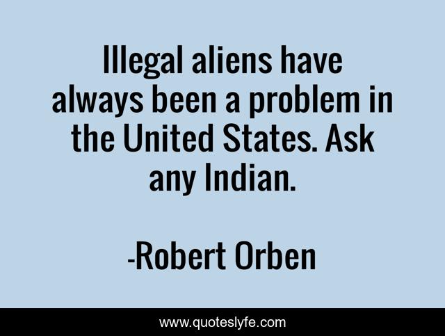 This page presents the quote "Illegal aliens have always been a problem in the United States. Ask any Indian.". Author of this quote is Robert Orben. This quote is about politics, humour, truth,.