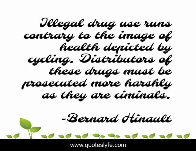 This page presents the quote "Illegal drug use runs contrary to the image of health depicted by cycling. Distributors of these drugs must be prosecuted more harshly as they are ciminals.". Author of this quote is Bernard Hinault. This quote is about image, cycling,.