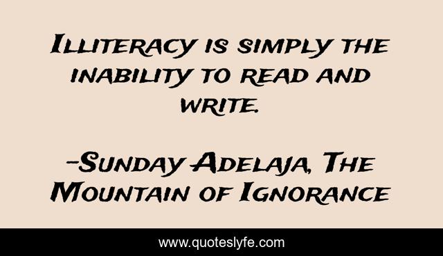 This page presents the quote "Illiteracy is simply the inability to read and write.". Author of this quote is Sunday Adelaja, The Mountain of Ignorance. This quote is about mountain, life, darkness, power, danger, read, god, illiteracy, people,.
