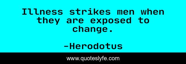 This page presents the quote "Illness strikes men when they are exposed to change.". Author of this quote is Herodotus. This quote is about men, illness, exposed,.