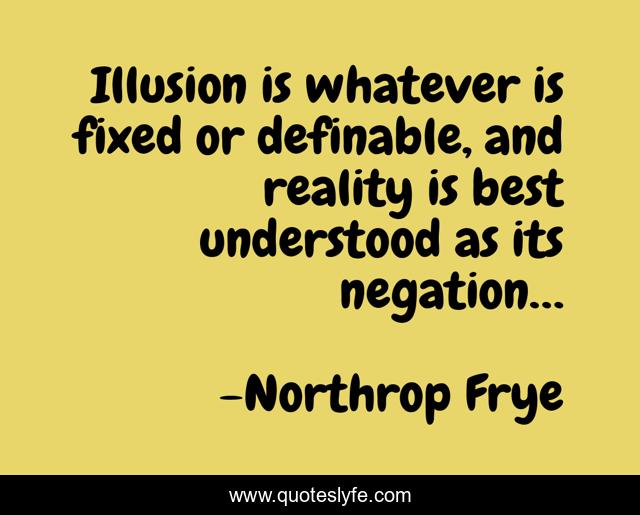This page presents the quote "Illusion is whatever is fixed or definable, and reality is best understood as its negation…". Author of this quote is Northrop Frye. This quote is about anatomy, criticism, literature, illusion, reality,.