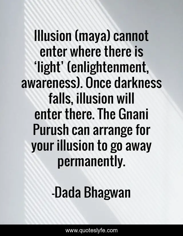 "Dada Bhagwan Quotes." Quoteslyfe.com, 2025. Fri. 05 Dec. 2025. <https://www.quoteslyfe.com/quote/Illusion-maya-cannot-enter-where-there-is-121055>.