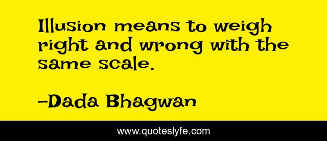This page presents the quote "Illusion means to weigh right and wrong with the same scale.". Author of this quote is Dada Bhagwan. This quote is about wrong, right, spiritual, illusion,.