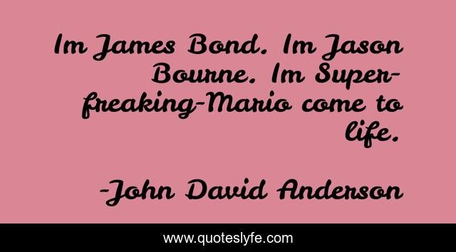 This page presents the quote "Im James Bond. Im Jason Bourne. Im Super-freaking-Mario come to life.". Author of this quote is John David Anderson. This quote is about funny, comedy,.