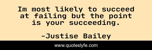 This page presents the quote "Im most likely to succeed at failing but the point is your succeeding.". Author of this quote is Justise Bailey. .