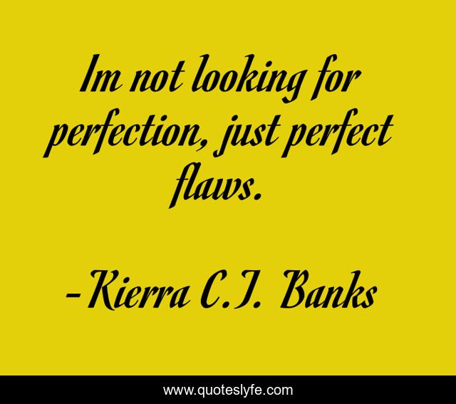 This page presents the quote "Im not looking for perfection, just perfect flaws.". Author of this quote is Kierra C.T. Banks. This quote is about perserverance, lifted, love, joy, endurance, ying-yang, wisdom, romance, growth,.