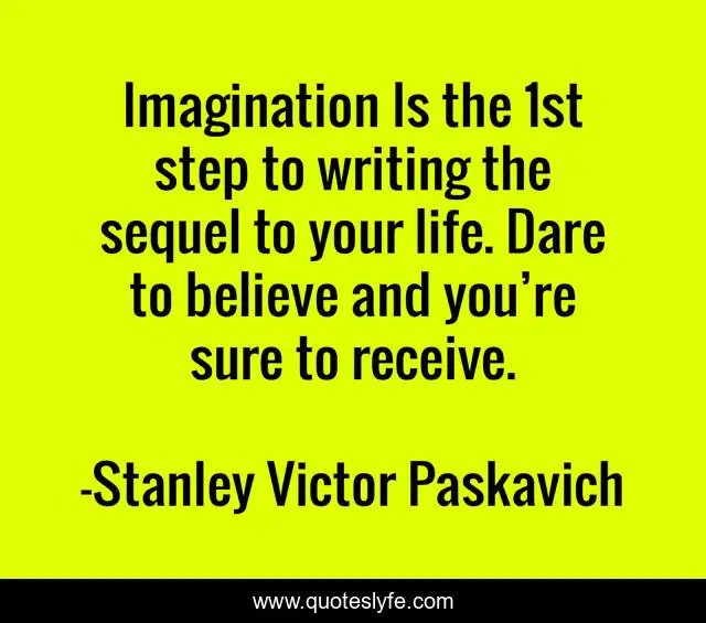 This page presents the quote "Imagination Is the 1st step to writing the sequel to your life. Dare to believe and you’re sure to receive.". Author of this quote is Stanley Victor Paskavich. .