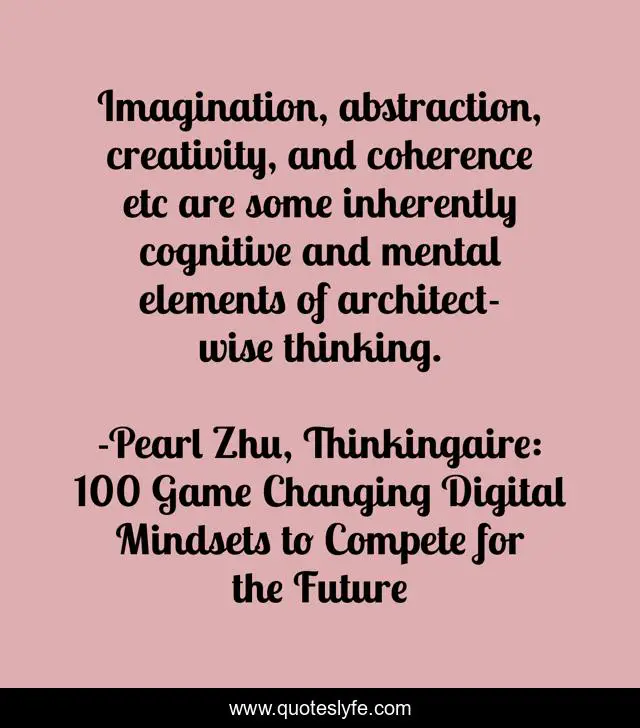 "Pearl Zhu, Thinkingaire: 100 Game Changing Digital Mindsets to Compete for the Future Quotes." Quoteslyfe.com, 2025. Fri. 05 Dec. 2025. <https://www.quoteslyfe.com/quote/Imagination-abstraction-creativity-and-coherence-etc-are-87039>.