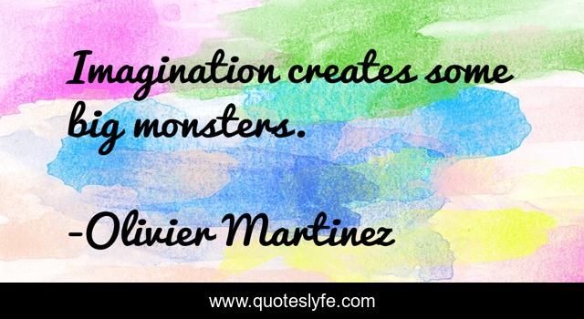 This page presents the quote "Imagination creates some big monsters.". Author of this quote is Olivier Martinez. This quote is about big, monsters,.
