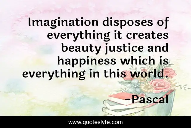 This page presents the quote "Imagination disposes of everything it creates beauty justice and happiness which is everything in this world.". Author of this quote is Pascal. .