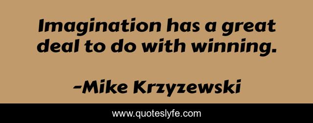 This page presents the quote "Imagination has a great deal to do with winning.". Author of this quote is Mike Krzyzewski. This quote is about great deal, great, winning,.
