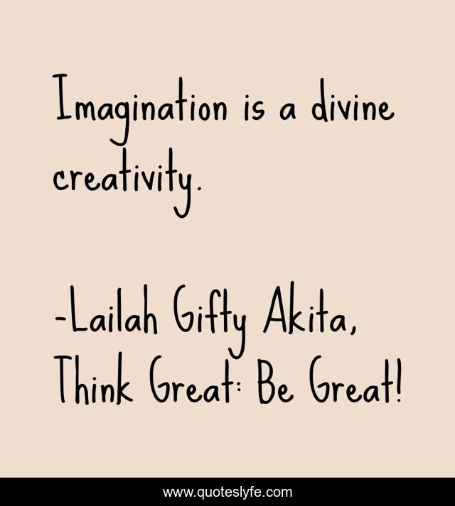 "Lailah Gifty Akita, Think Great: Be Great! Quotes." Quoteslyfe.com, 2025. Fri. 05 Dec. 2025. <https://www.quoteslyfe.com/quote/Imagination-is-a-divine-creativity-108290>.