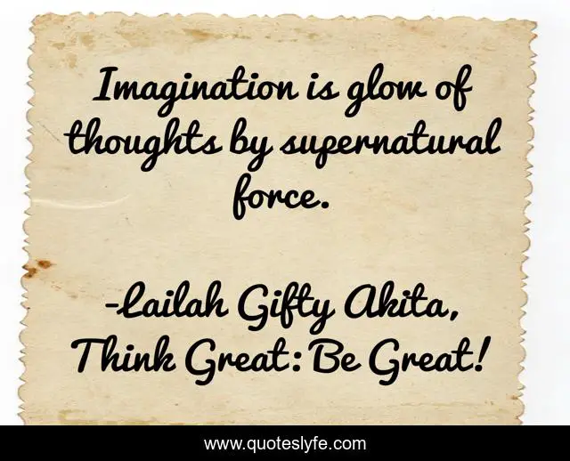 "Lailah Gifty Akita, Think Great: Be Great! Quotes." Quoteslyfe.com, 2025. Fri. 05 Dec. 2025. <https://www.quoteslyfe.com/quote/Imagination-is-glow-of-thoughts-by-supernatural-62615>.