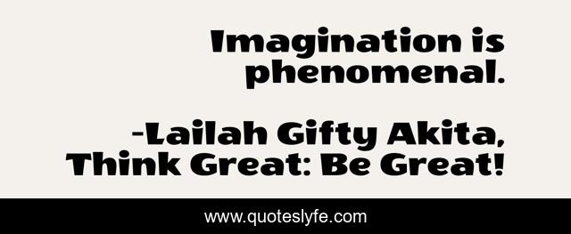 "Lailah Gifty Akita, Think Great: Be Great! Quotes." Quoteslyfe.com, 2025. Sat. 06 Dec. 2025. <https://www.quoteslyfe.com/quote/Imagination-is-phenomenal-95118>.