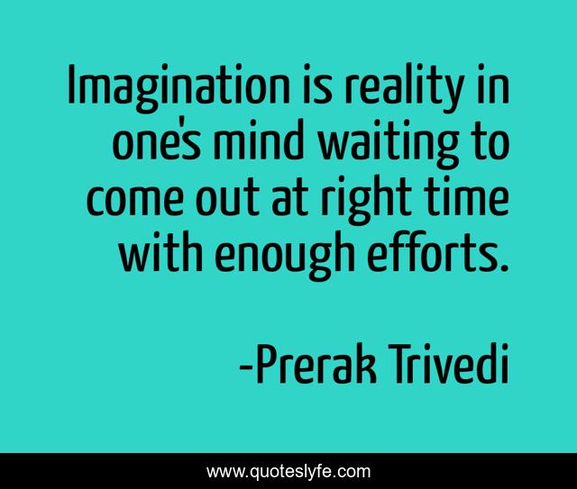 This page presents the quote "Imagination is reality in one's mind waiting to come out at right time with enough efforts.". Author of this quote is Prerak Trivedi. This quote is about imagination, effort, reality,.