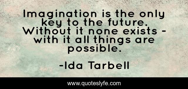 This page presents the quote "Imagination is the only key to the future. Without it none exists - with it all things are possible.". Author of this quote is Ida Tarbell. This quote is about future, key, without,.