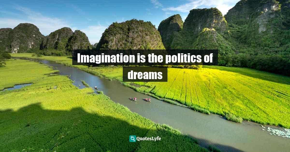 "imagination turns every word into a bottle rocket. . . . Imagine every day is Independence Day and save us from traveling the river changed Quotes." Quoteslyfe.com, 2026. Sat. 21 Mar. 2026. <https://www.quoteslyfe.com/quote/Imagination-is-the-politics-of-dreams-125800>.