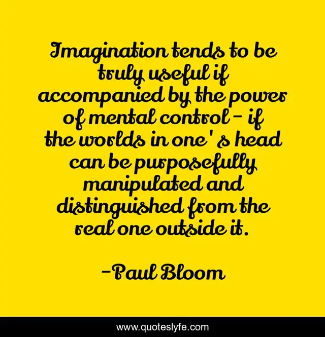 This page presents the quote "Imagination tends to be truly useful if accompanied by the power of mental control - if the worlds in one's head can be purposefully manipulated and distinguished from the real one outside it.". Author of this quote is Paul Bloom. This quote is about control, real, power,.
