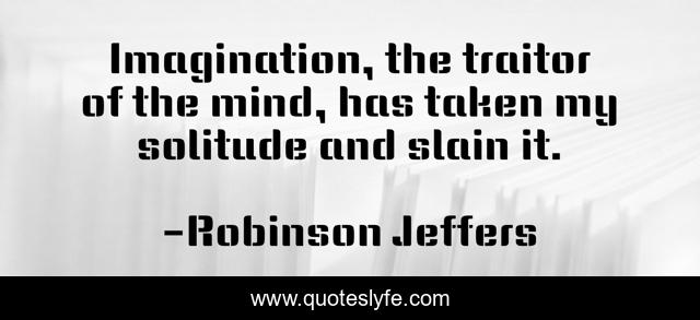 This page presents the quote "Imagination, the traitor of the mind, has taken my solitude and slain it.". Author of this quote is Robinson Jeffers. This quote is about mind, solitude, traitor,.