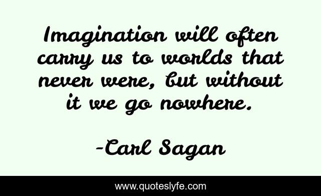 This page presents the quote "Imagination will often carry us to worlds that never were, but without it we go nowhere.". Author of this quote is Carl Sagan. .