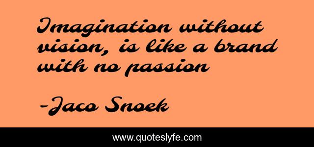 This page presents the quote "Imagination without vision, is like a brand with no passion". Author of this quote is Jaco Snoek. .