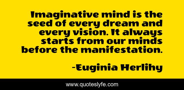 This page presents the quote "Imaginative mind is the seed of every dream and every vision. It always starts from our minds before the manifestation.". Author of this quote is Euginia Herlihy. .