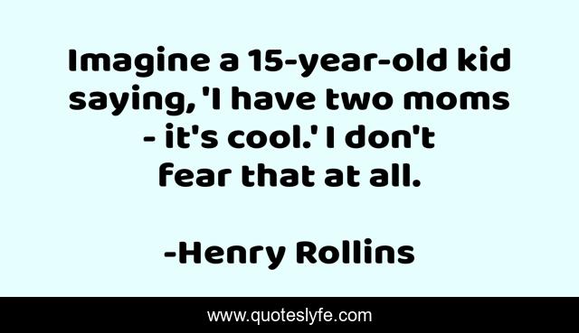 This page presents the quote "Imagine a 15-year-old kid saying, 'I have two moms - it's cool.' I don't fear that at all.". Author of this quote is Henry Rollins. This quote is about saying, fear, kid,.