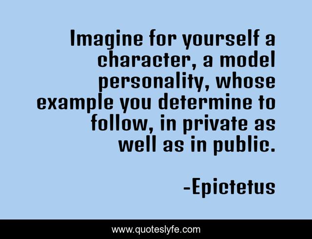 This page presents the quote "Imagine for yourself a character, a model personality, whose example you determine to follow, in private as well as in public.". Author of this quote is Epictetus. This quote is about character, personality,.