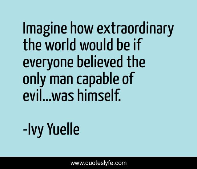 This page presents the quote "Imagine how extraordinary the world would be if everyone believed the only man capable of evil…was himself.". Author of this quote is Ivy Yuelle. .