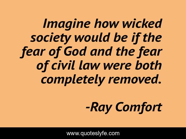 This page presents the quote "Imagine how wicked society would be if the fear of God and the fear of civil law were both completely removed.". Author of this quote is Ray Comfort. This quote is about god, law, society,.