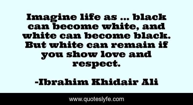 This page presents the quote "Imagine life as ... black can become white, and white can become black. But white can remain if you show love and respect.". Author of this quote is Ibrahim Khidair Ali. .