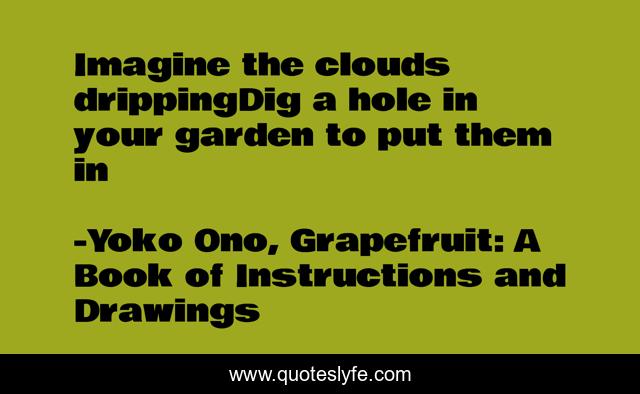 This page presents the quote "Imagine the clouds drippingDig a hole in your garden to put them in". Author of this quote is Yoko Ono, Grapefruit: A Book of Instructions and Drawings. This quote is about imagination, hidenness,.