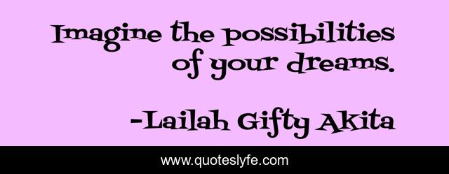 "Lailah Gifty Akita Quotes." Quoteslyfe.com, 2025. Sun. 07 Dec. 2025. <https://www.quoteslyfe.com/quote/Imagine-the-possibilities-of-your-dreams-131291>.