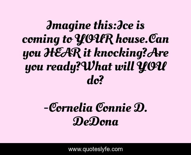 "Cornelia Connie D. DeDona Quotes." Quoteslyfe.com, 2025. Fri. 05 Dec. 2025. <https://www.quoteslyfe.com/quote/Imagine-this-Ice-is-coming-to-YOUR-223885>.