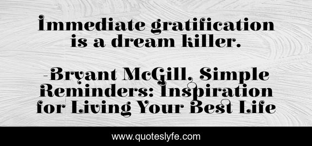 "Bryant McGill, Simple Reminders: Inspiration for Living Your Best Life Quotes." Quoteslyfe.com, 2025. Tue. 09 Dec. 2025. <https://www.quoteslyfe.com/quote/Immediate-gratification-is-a-dream-killer-198655>.