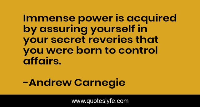 This page presents the quote "Immense power is acquired by assuring yourself in your secret reveries that you were born to control affairs.". Author of this quote is Andrew Carnegie. This quote is about positive, confidence,.