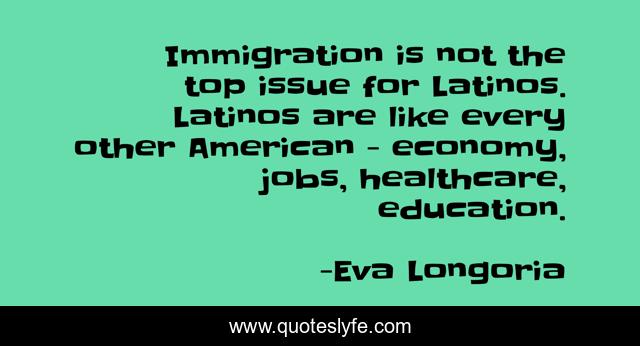 This page presents the quote "Immigration is not the top issue for Latinos. Latinos are like every other American - economy, jobs, healthcare, education.". Author of this quote is Eva Longoria. This quote is about american, healthcare,.