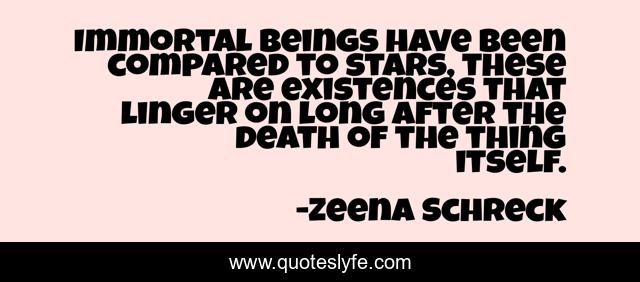 "Zeena Schreck Quotes." Quoteslyfe.com, 2025. Mon. 08 Dec. 2025. <https://www.quoteslyfe.com/quote/Immortal-beings-have-been-compared-to-stars-201835>.