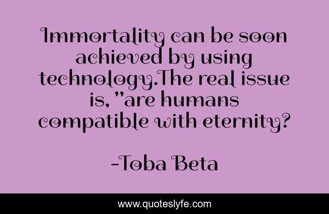 "Toba Beta Quotes." Quoteslyfe.com, 2025. Fri. 05 Dec. 2025. <https://www.quoteslyfe.com/quote/Immortality-can-be-soon-achieved-by-using-234779>.