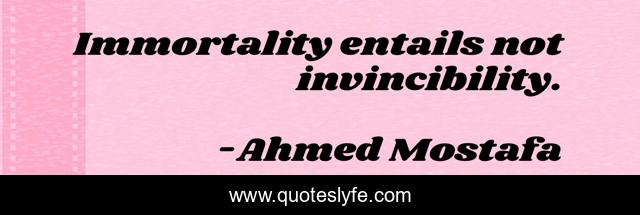 "Ahmed Mostafa Quotes." Quoteslyfe.com, 2025. Fri. 05 Dec. 2025. <https://www.quoteslyfe.com/quote/Immortality-entails-not-invincibility-245893>.
