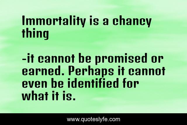 "it cannot be promised or earned. Perhaps it cannot even be identified for what it is. Quotes." Quoteslyfe.com, 2025. Mon. 08 Dec. 2025. <https://www.quoteslyfe.com/quote/Immortality-is-a-chancy-thing-234703>.