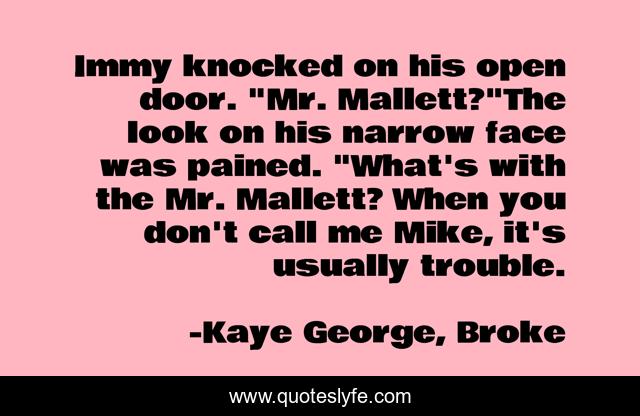 "Kaye George, Broke Quotes." Quoteslyfe.com, 2025. Fri. 05 Dec. 2025. <https://www.quoteslyfe.com/quote/Immy-knocked-on-his-open-door-Mr-146627>.