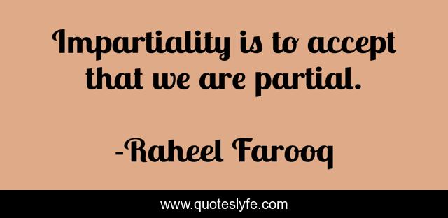 This page presents the quote "Impartiality is to accept that we are partial.". Author of this quote is Raheel Farooq. .