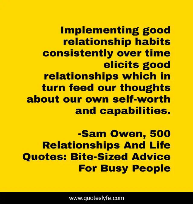 "Sam Owen, 500 Relationships And Life Quotes: Bite-Sized Advice For Busy People Quotes." Quoteslyfe.com, 2025. Fri. 05 Dec. 2025. <https://www.quoteslyfe.com/quote/Implementing-good-relationship-habits-consistently-over-time-35796>.