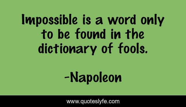 This page presents the quote "Impossible is a word only to be found in the dictionary of fools.". Author of this quote is Napoleon. .